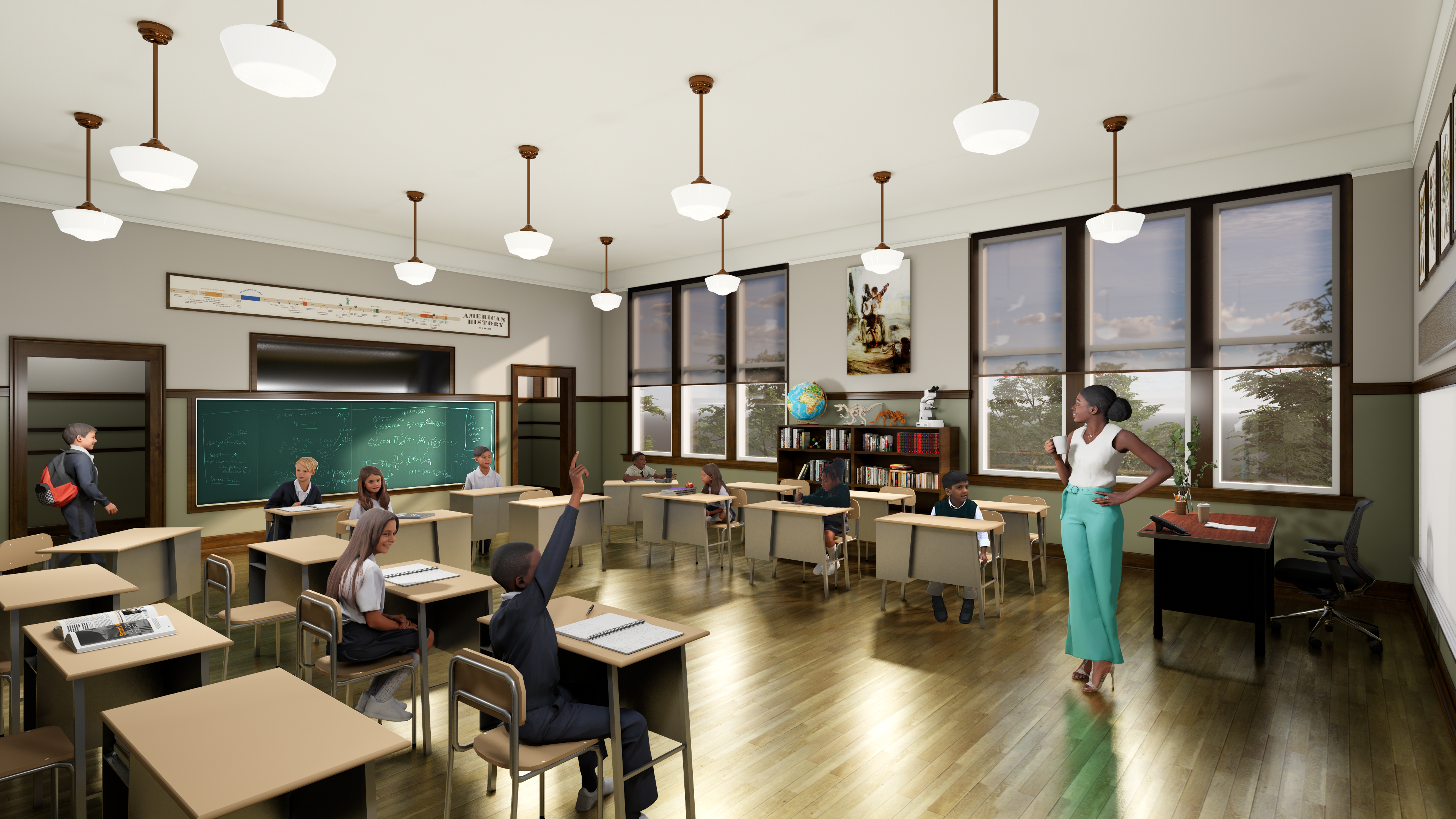 project: Renderings of the renovation of an existing Chicago Public School building, listed on the National Register of Historic Places. The building has fallen into severe disrepair over the years that it has been vacant. It will be enlivened once more by the Field School as it expands from their current campus next door.
